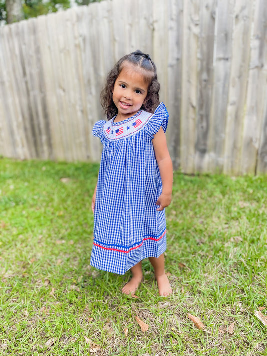 Gingham American Flag Smocked Bishop Dress