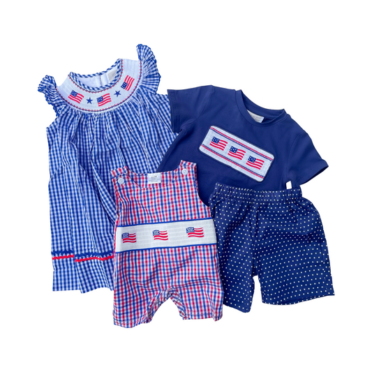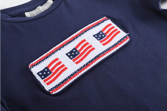Navy American Flag Smocked Tee and Star Shorts Set